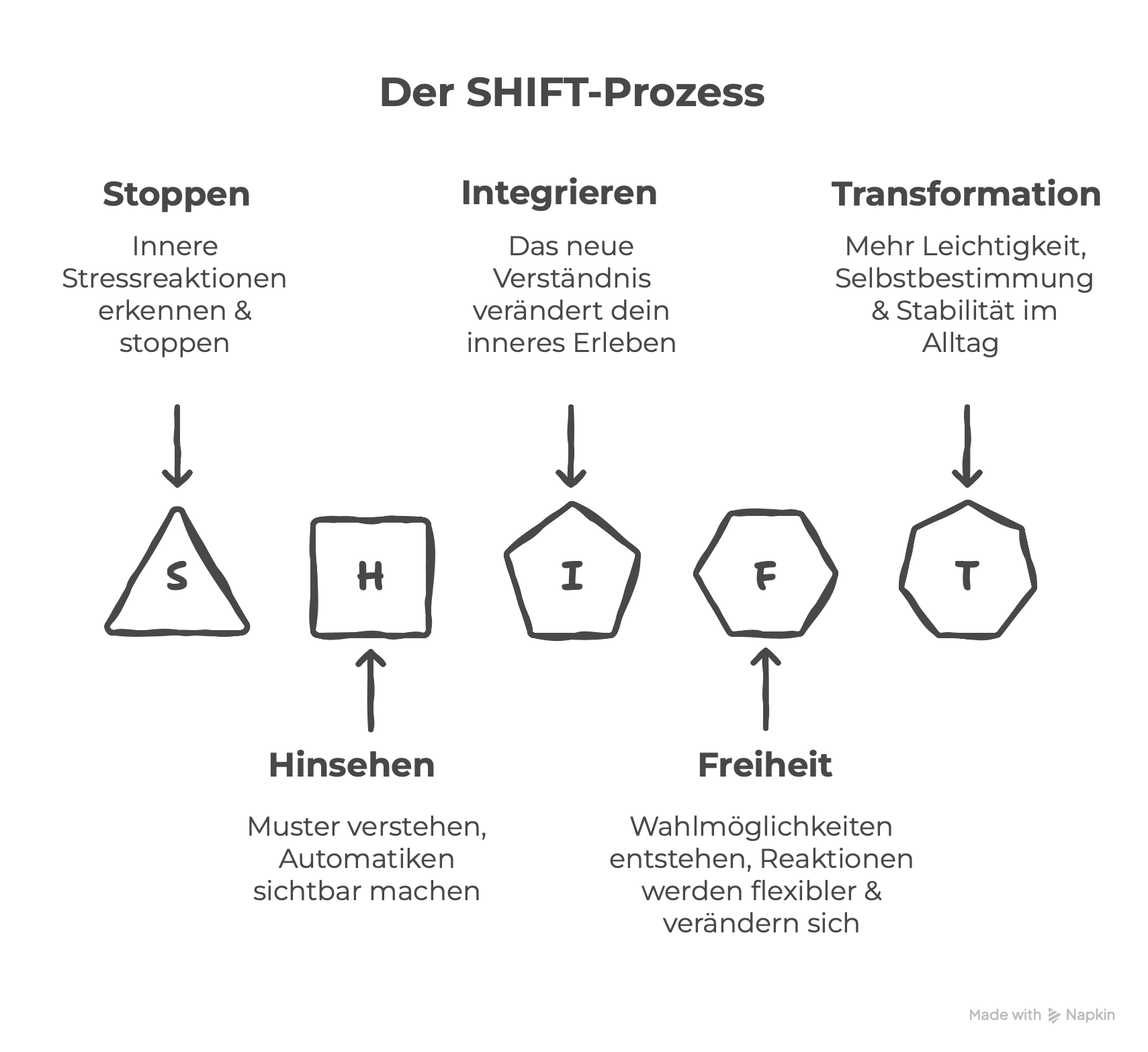 Wir sorgen dafür, dass du in der Zukunft einfacher und souveräner mit Stress umgehst und in schwierigen Situationen nicht in alte Gewohnheiten zurückfällst.
